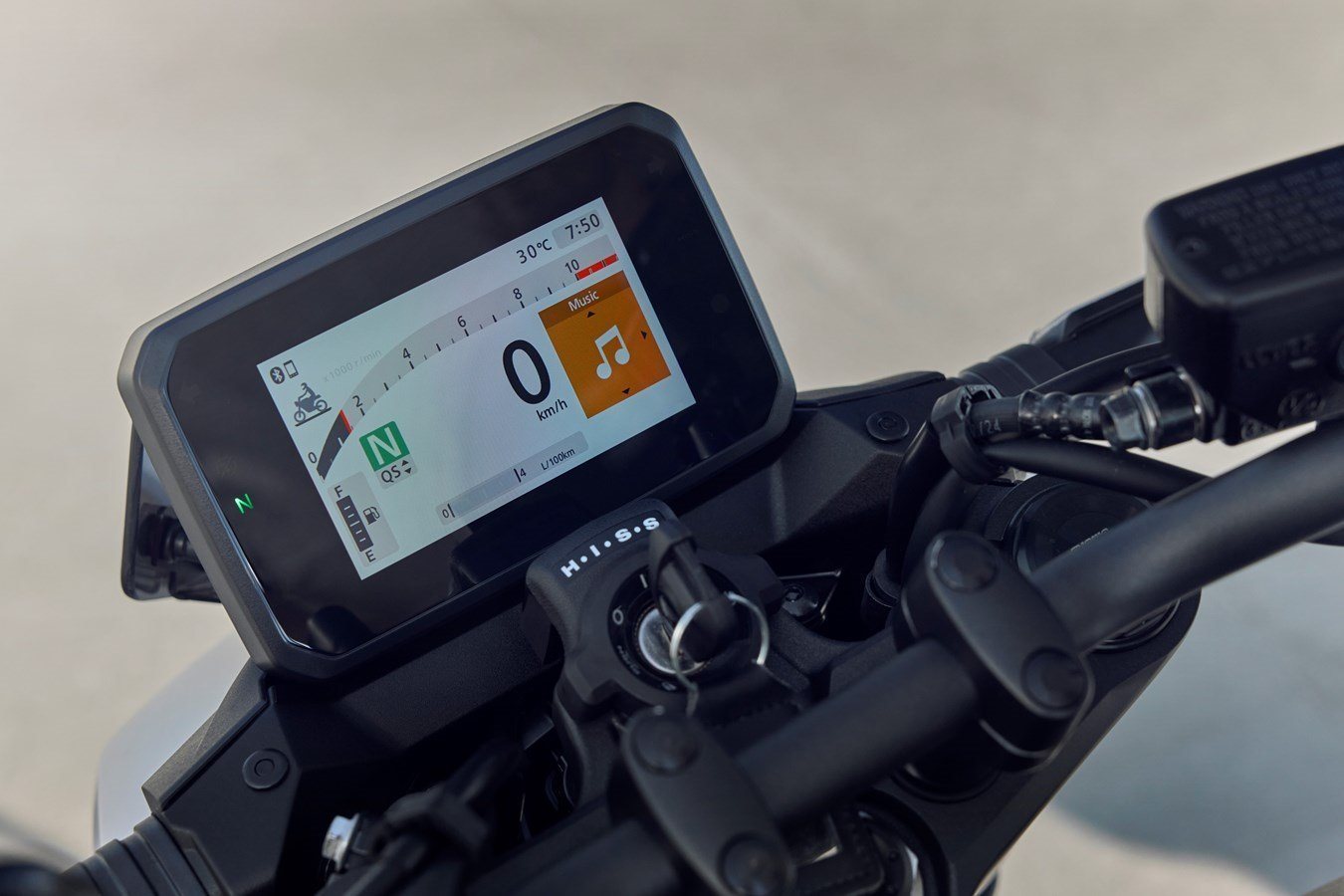 Neu ist ebenfalls das 5 Zoll große TFT-Farbdisplay, das alle Infos und Systeme anschaulich darstellt und das die RoadSync-Konnektivität für Android- und IOS-Smartphones integriert. Die Bedienung erfolgt praxisgerecht über einen Vierwege-Kippschalter links am Lenker.