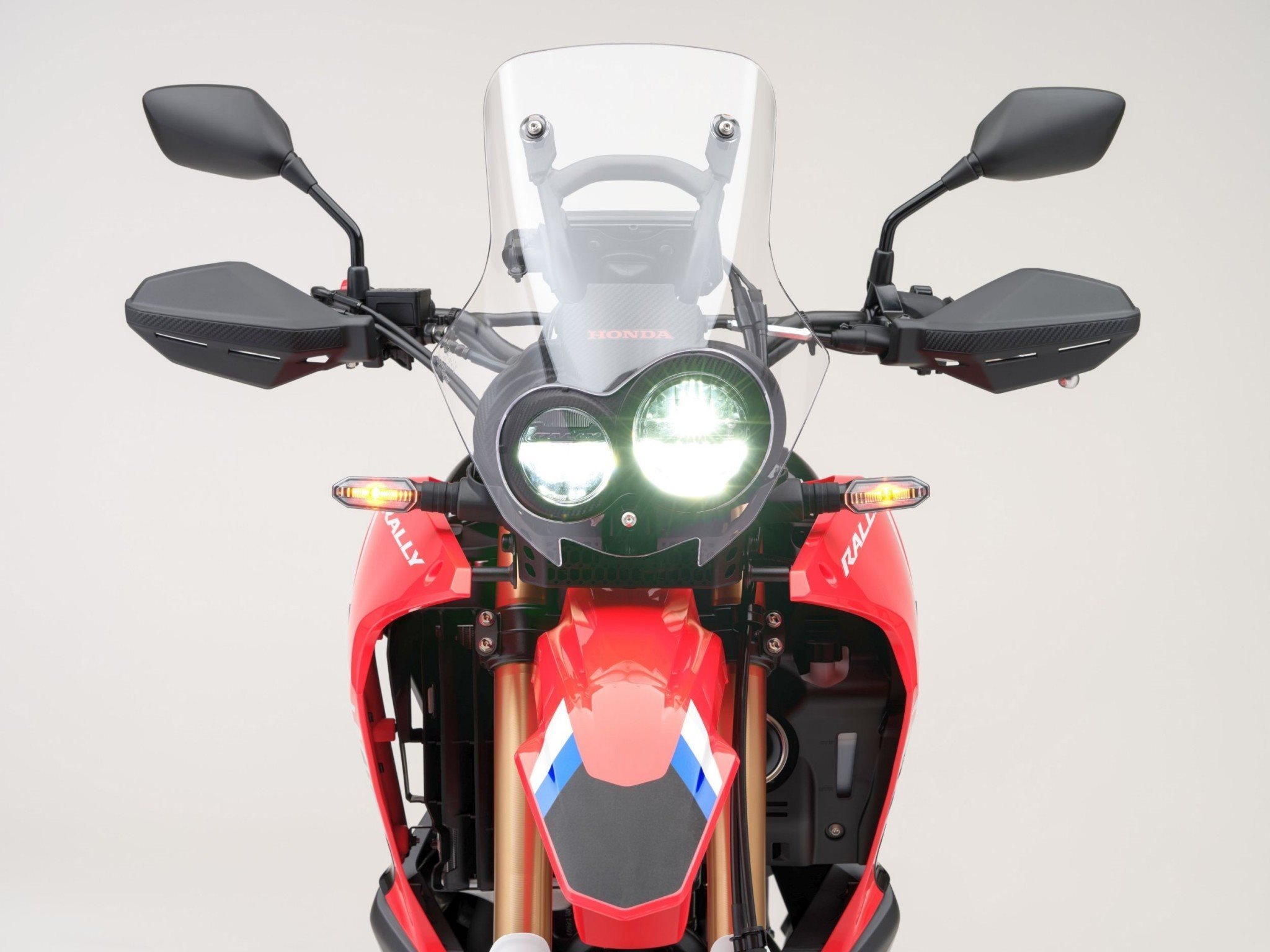 Die CRF ist mit einer robusten Verkleidung ausgestattet, die den 12,8 l großen Tank beherbergt. Ein bequemer, breiter Sitz bietet reichlich Sitzkomfort, im Cockpit informiert ein bestens ablesbares LCD-Instrument. Den asymmetrischen Doppel LED-Scheinwerfer ergänzen beim 2025er Modelljahrgang neue, kompakte LED-Blinker. Neu ist ebenfalls ein optional erhältlicher USB-C-Anschluss.