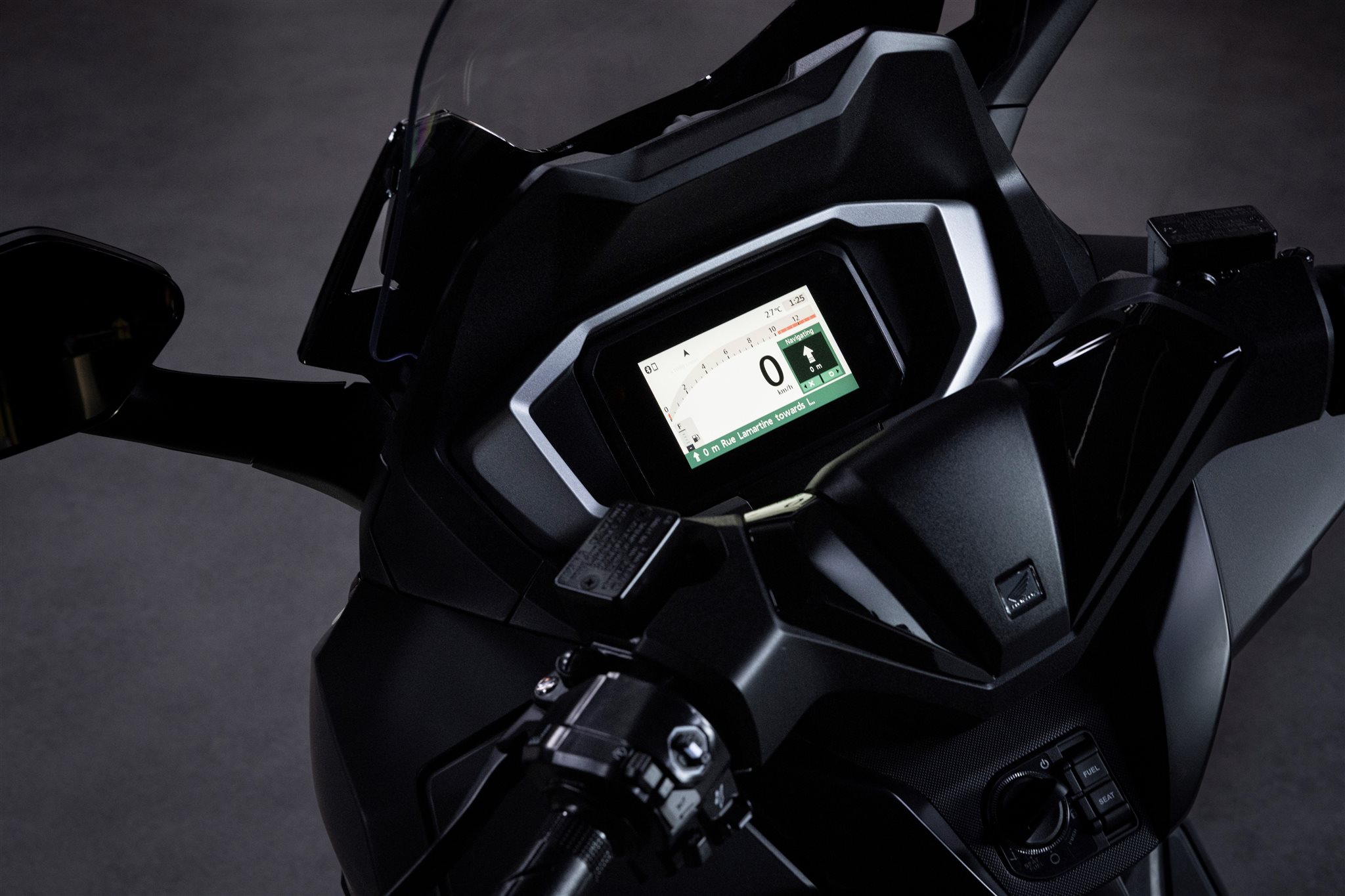 Ein 5 Zoll-TFT-Farbdisplay, welches dank „Optical-Bonding“-Technologie auch unter Sonnenlicht beste Ablesbarkeit bietet, ist seit 2025 mit RoadSync-Konnektivität für Android- und iOS-Smartphones ausgestattet; die Bedienung erfolgt über eine intuitiv bedienbare, bei Nacht hinterleuchtete Vierwege-Schalterarmatur. Weitere nützliche Features sind ein USB-C-Anschluss im Handschuhfach um etwa unterwegs ein Handy aufzuladen sowie ein Staufach unter der Sitzbank, das für zwei Integralhelme Platz bietet.