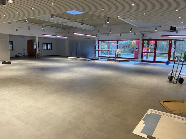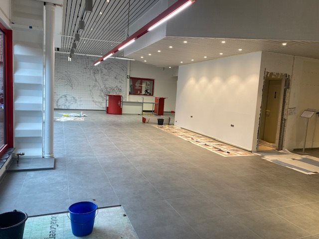 Der neue Boden ist fertig und auch der Trockenbau geht voran.